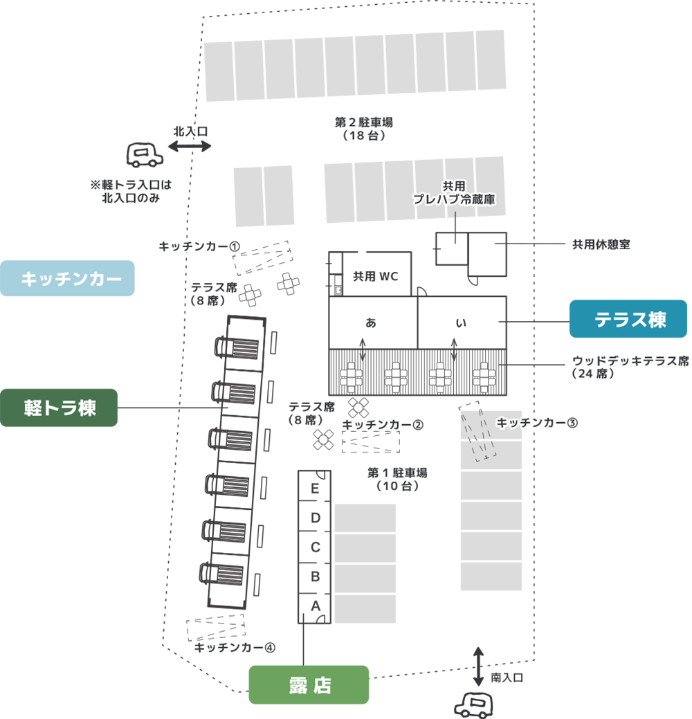 ★敷地内に4台分のキッチンカー用スペースを確保しています。